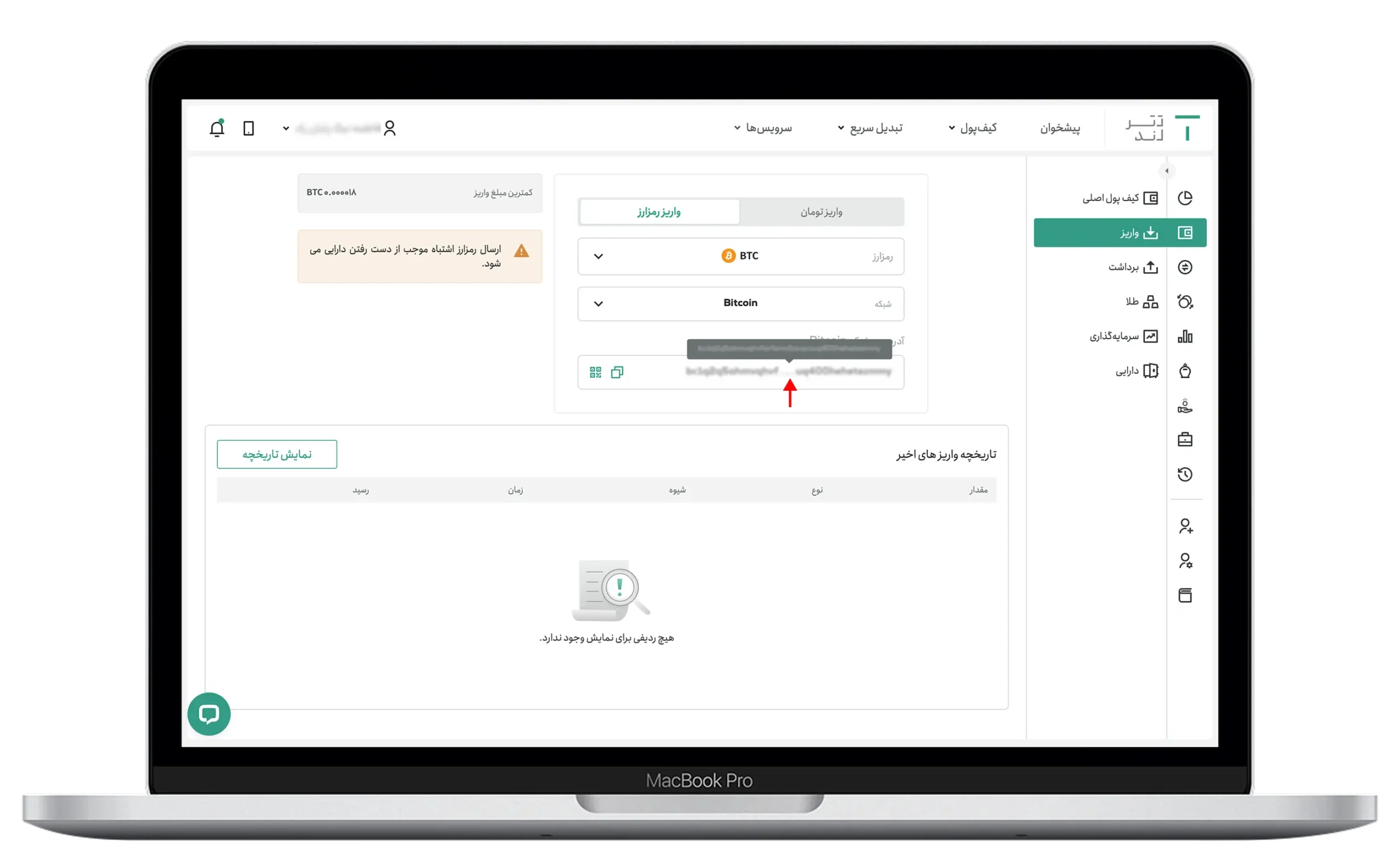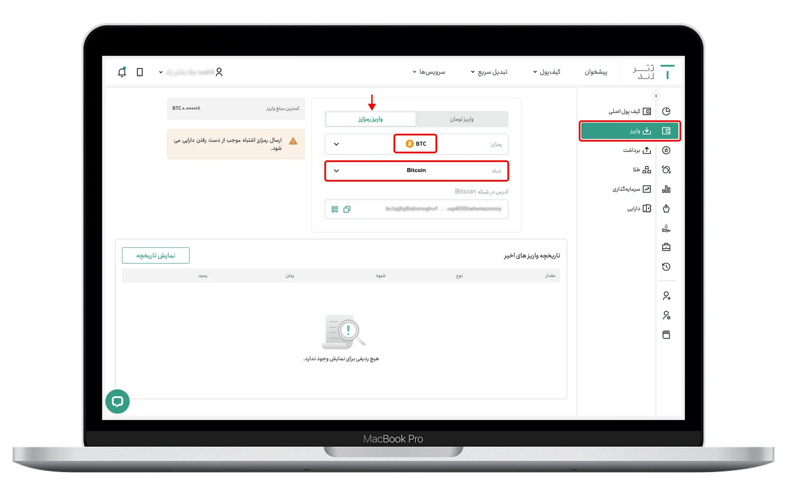 فرآیند واریز رمزارز را میتوانید از اینجا شروع کنید.