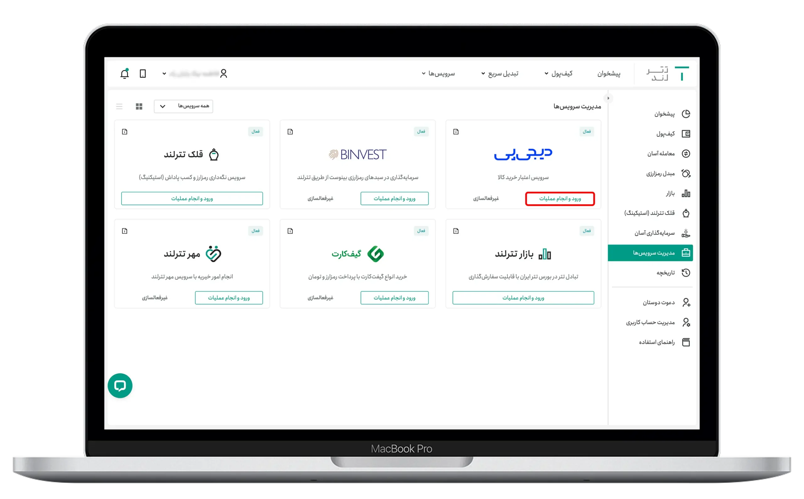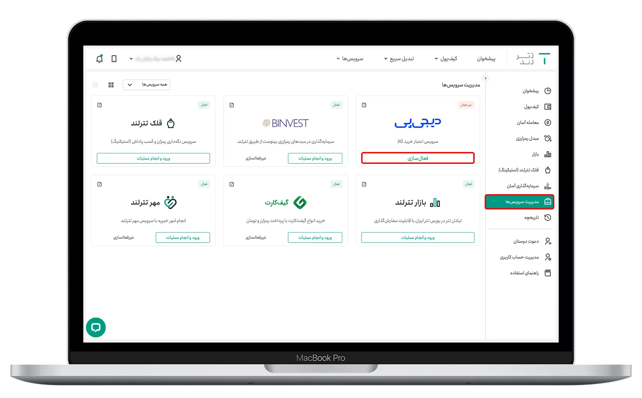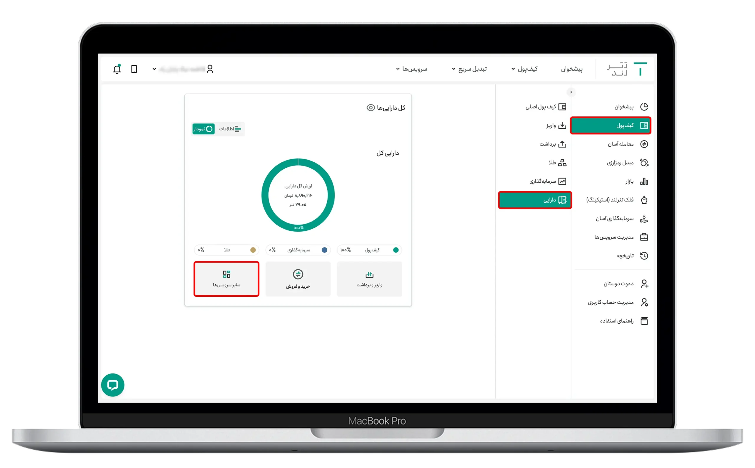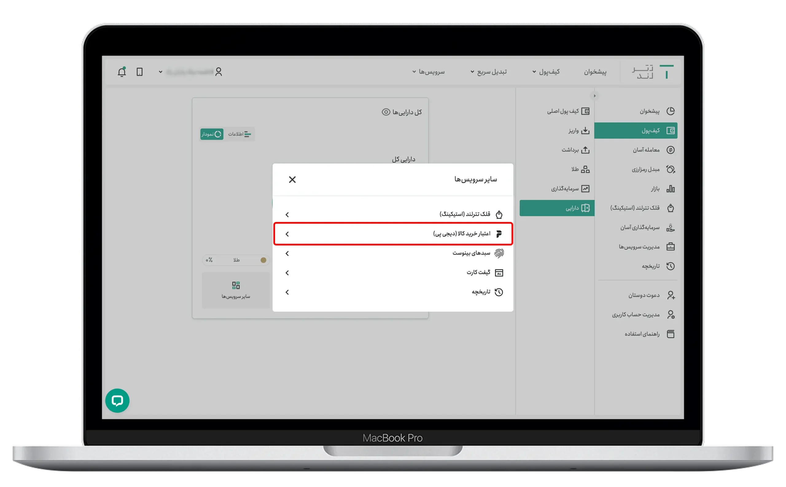 از طریق داراییکل و کلیک روی سایر سرویسها، میتوانید به سرویس دیجیپی دسترسی داشته باشید.