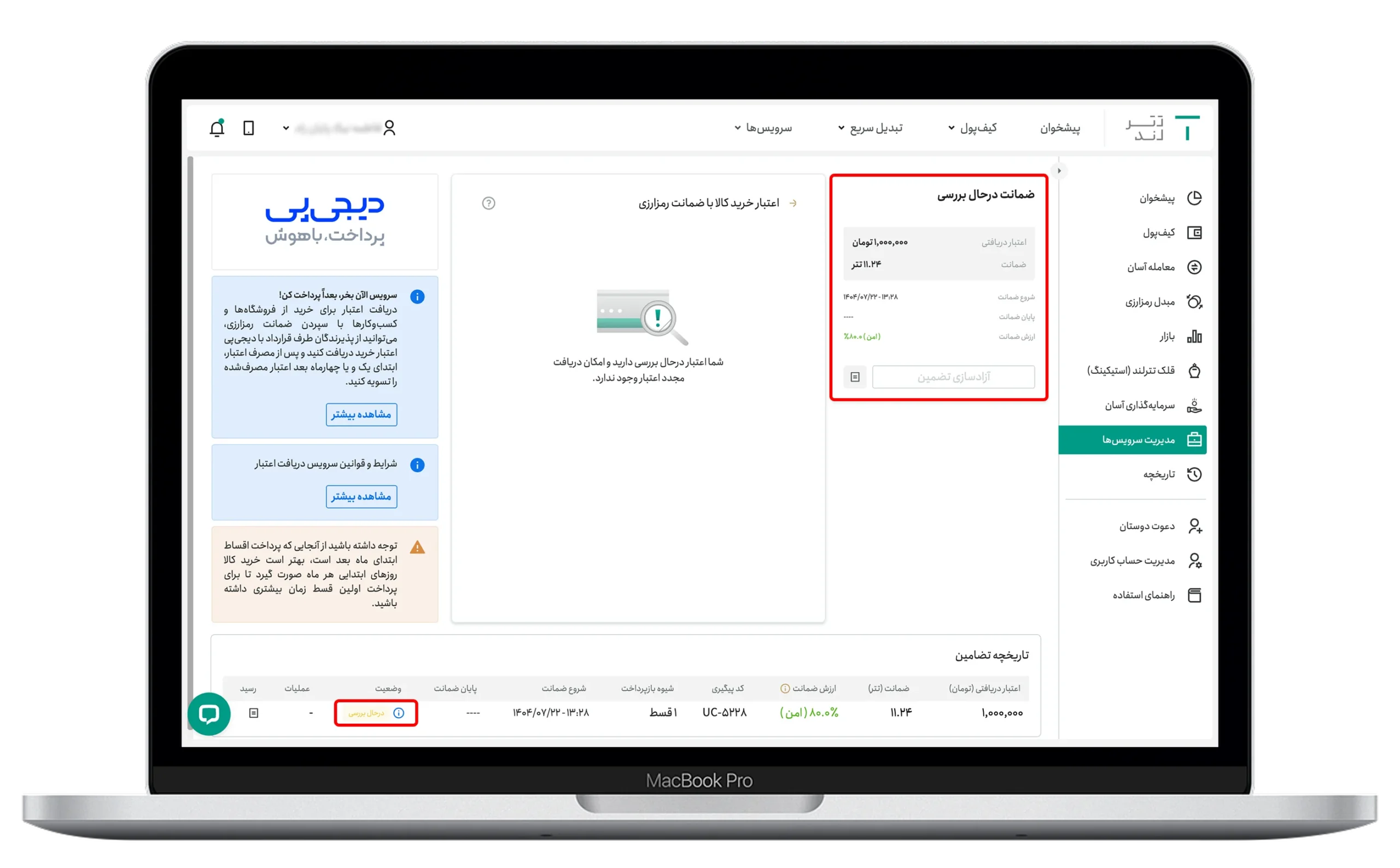 آموزش ثبت ضمانت و دریافت اعتبار دیجیپی