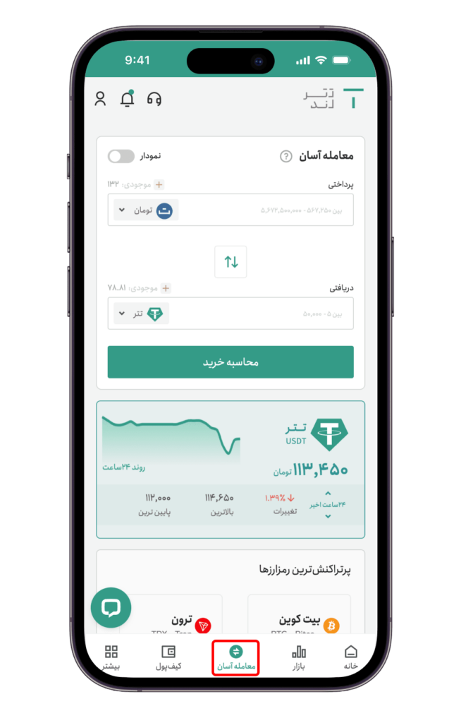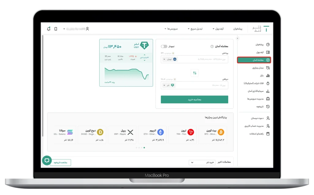 در این بخش میتوانید تومان یا تتر خود را به بیش از ۶۰۰ رمزارز محبوب تبدیل کنید و برعکس. این روش سریع، ساده و مناسب برای همه کاربران است.
