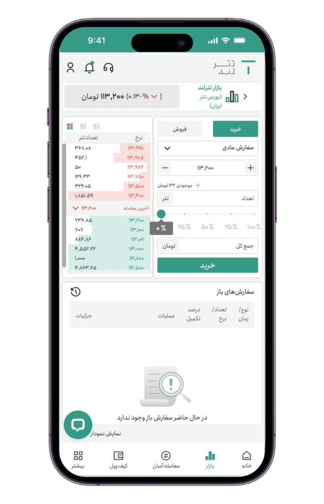 بازار تترلند مخصوص خرید و فروش تتر است. در این بخش میتوانید تتر را با نرخ دلخواه خود یا بهترین نرخ موجود در بازار معامله کنید.