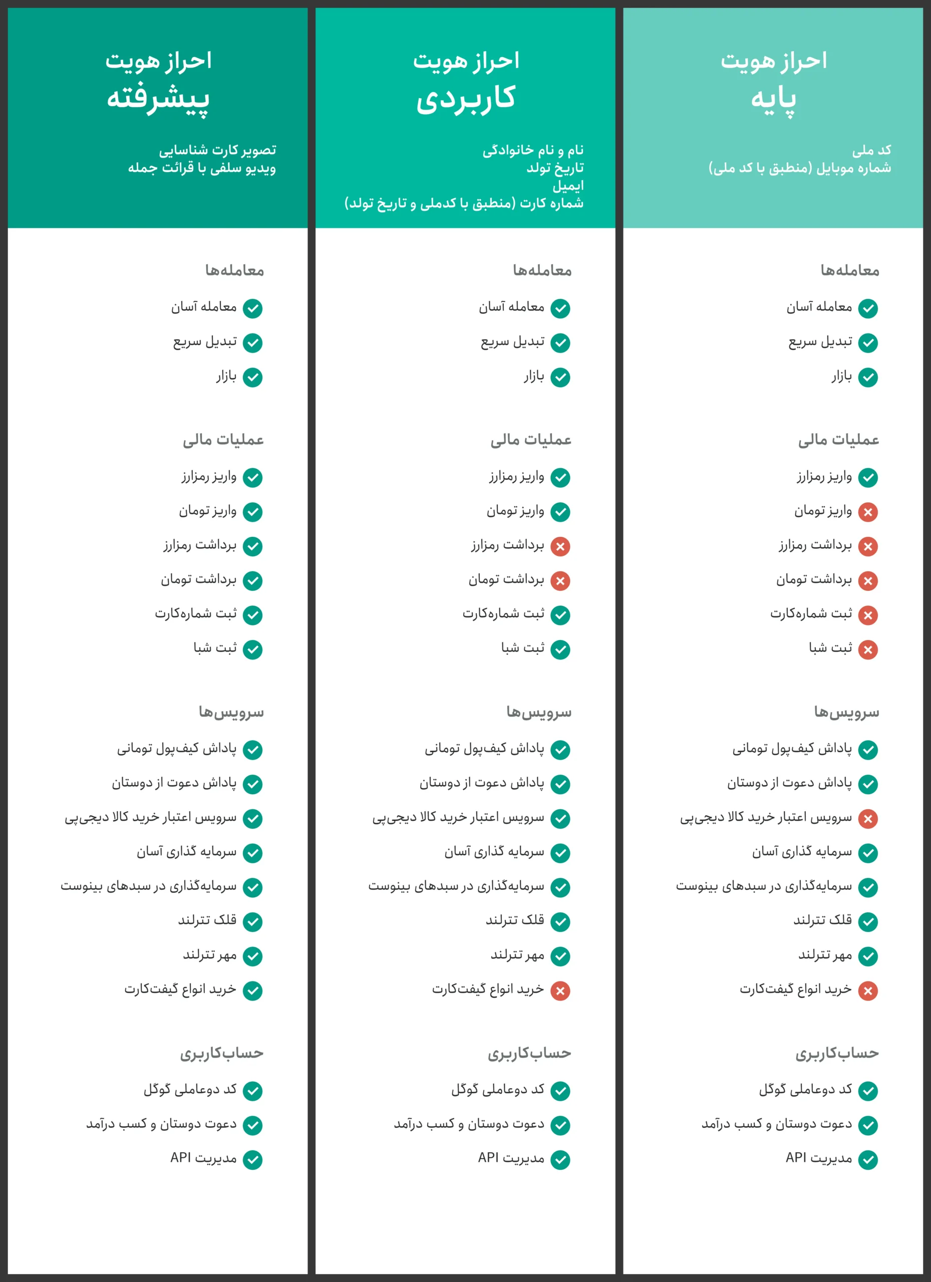 در هر سطح، دسترسیهای خاصی برای استفاده از خدمات مالی فراهم شده است.