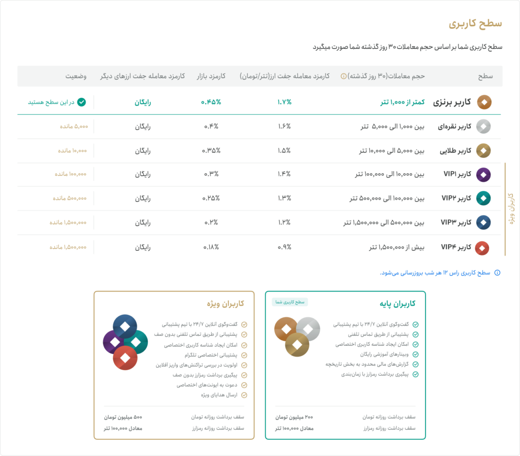 با افزایش تعداد و حجم تراکنشهای شما در تترلند و ارتقای سطح کاربری، به جمع کاربران ویژه تترلند اضافه خواهید شد.