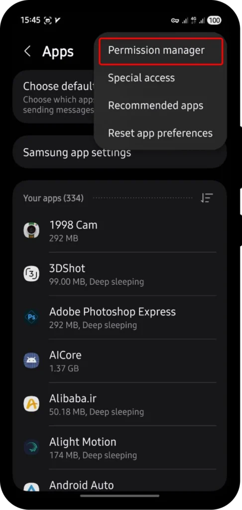 ۳. از میان گزینهها، وارد بخش Permission Manager شوید.