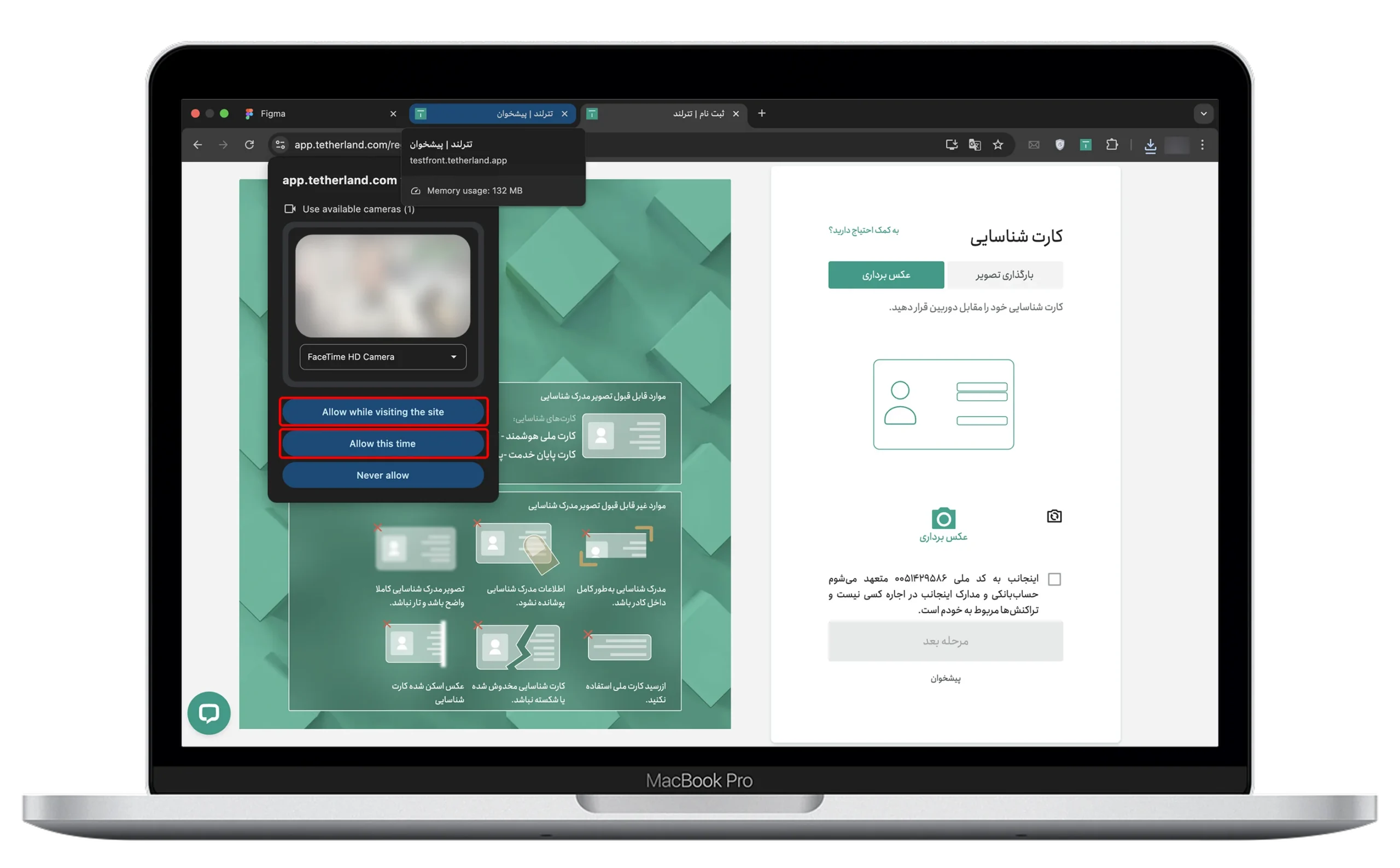 به ازای ورود به بخش عکسبرداری، در صورتی که مجوزهای دسترسی از قبل فعال باشند، از شما پرسیده میشود که سیستم اجازه استفاده از دوربین و میکروفون را دارد یا خیر که لازم است روی دکمه Allow While Visiting the site و یا Allow this time کلیک کنید.