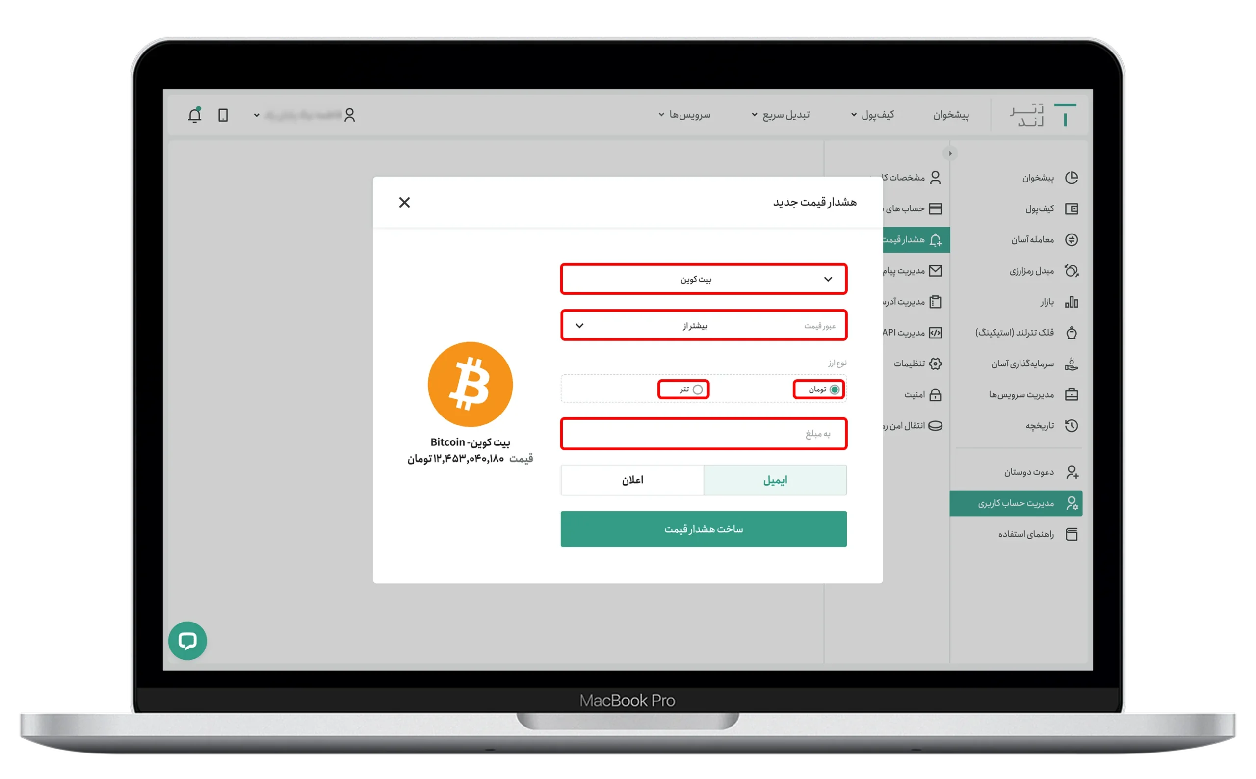 سرویس هشدار قیمت به شما کمک میکند تا از تغییرات قیمت رمزارزهای موردنظرتان بهصورت خودکار مطلع شوید.