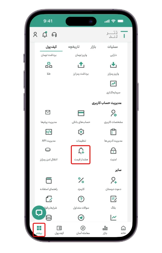 ابتدا وارد حساب کاربری خود در تترلند شوید. سپس از مسیرهای زیر میتوانید به بخش هشدار قیمت دسترسی پیدا کنید: