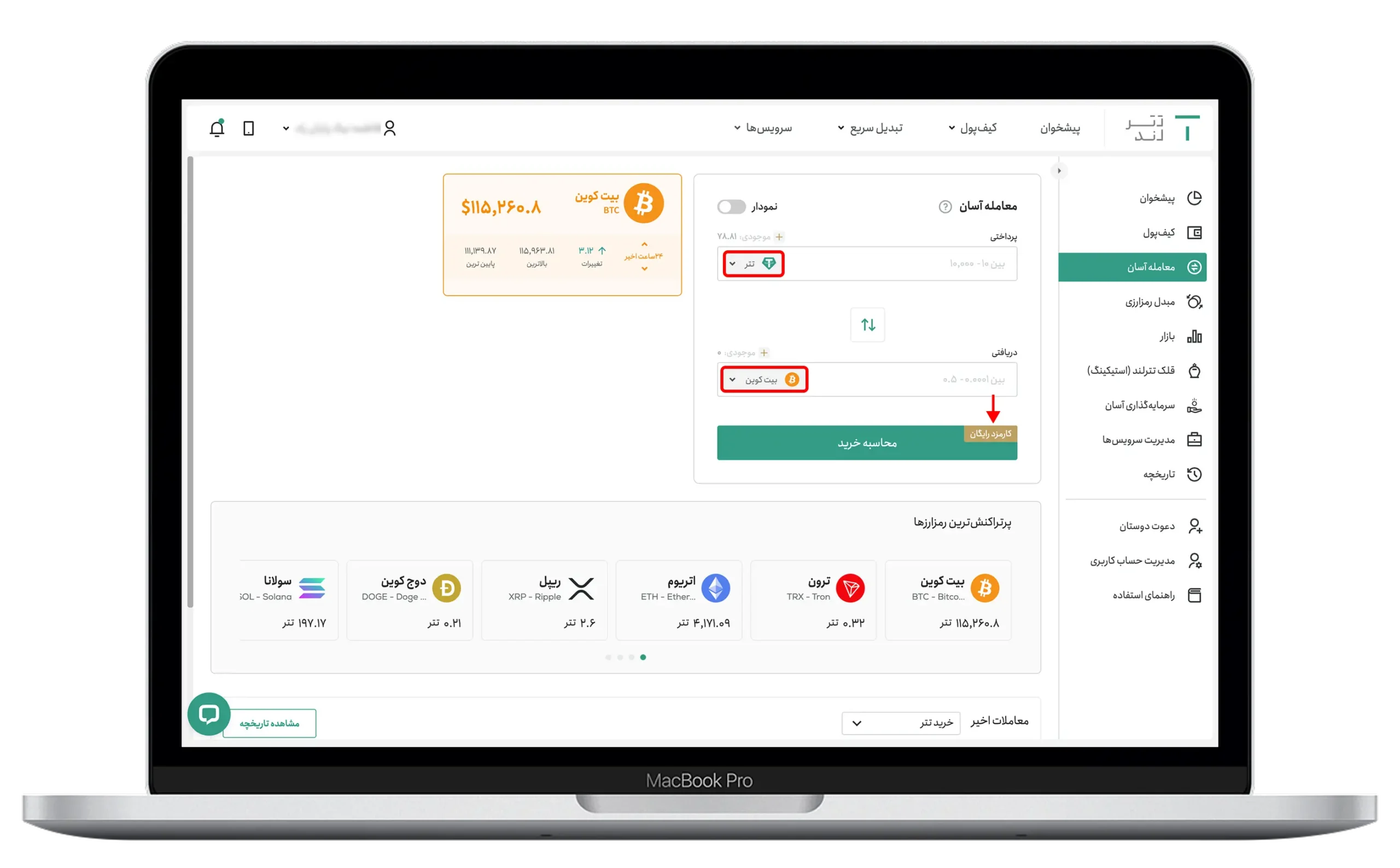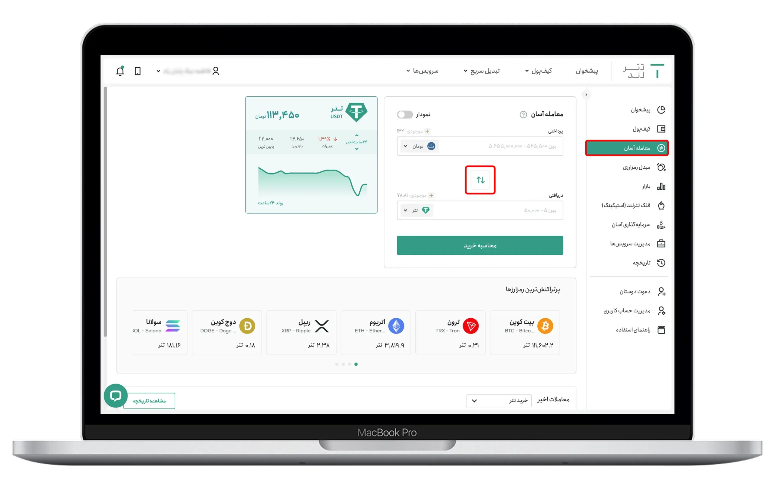 سرویس معامله آسان نسخهی آپدیتشده مبدل رمزارزی است که برای تبدیل سریع و سادهی رمزارزها طراحی شده است.