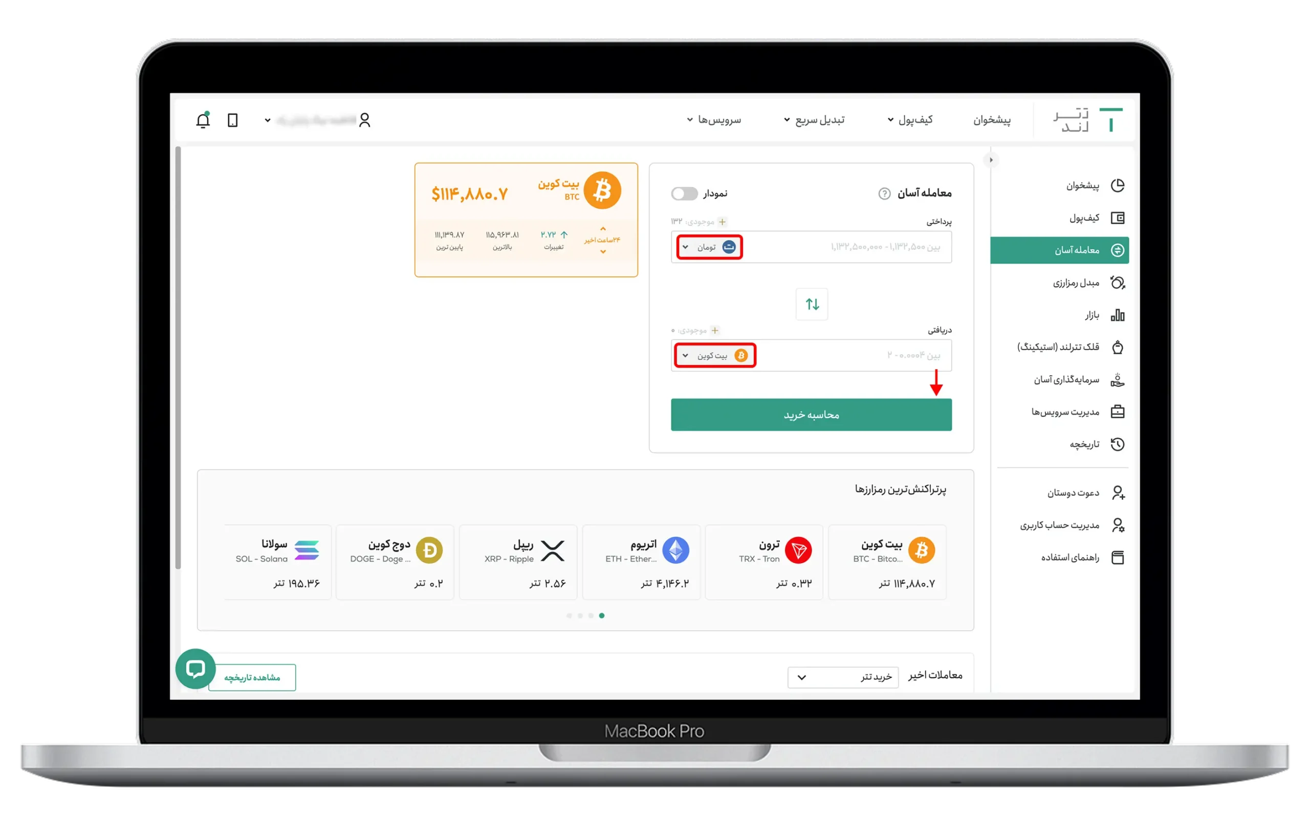 - تتر و سایر رمزارزها را به تومان تبدیل نمایید.