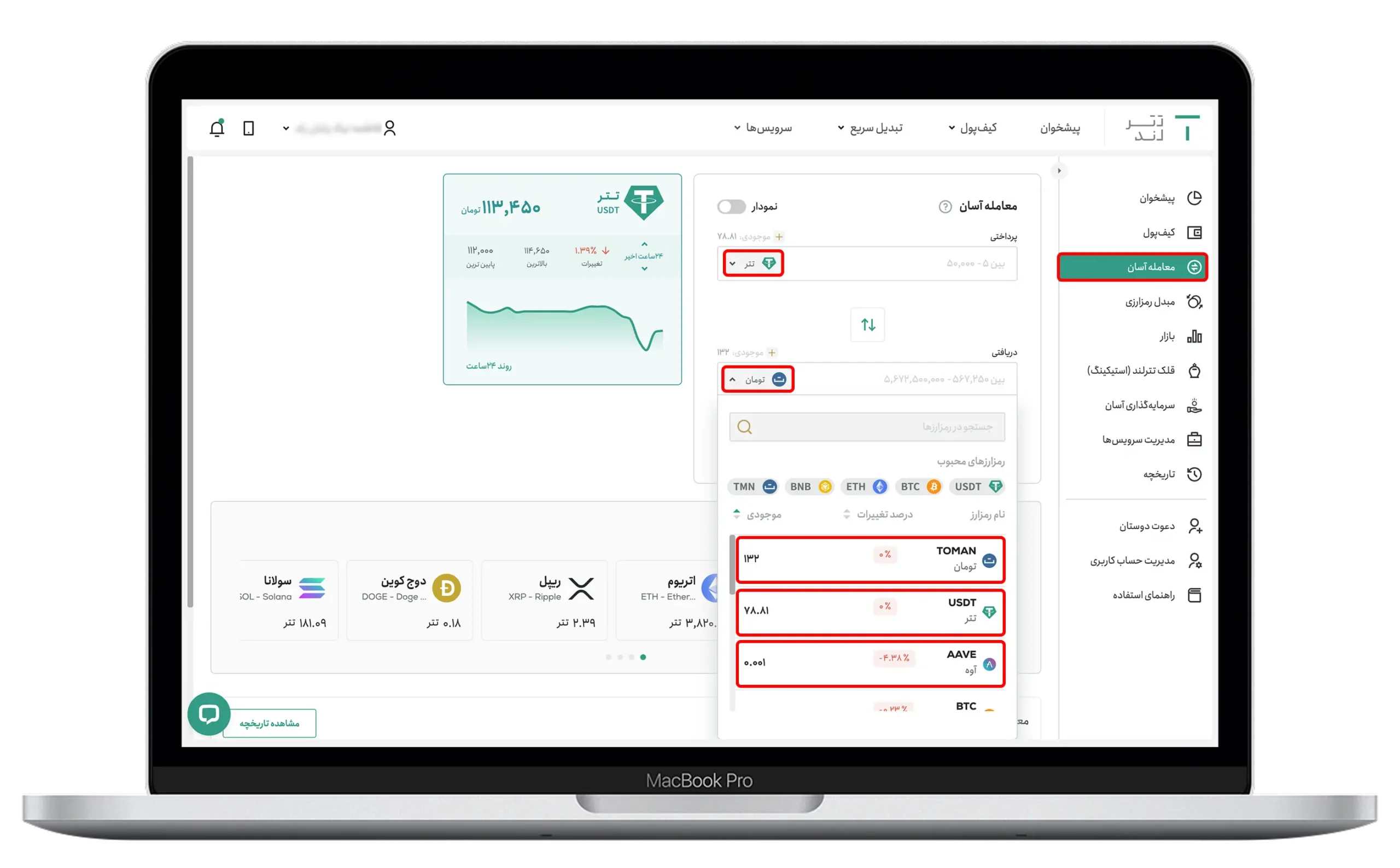 - تومان را به تتر یا سایر رمزارزها تبدیل کنید.