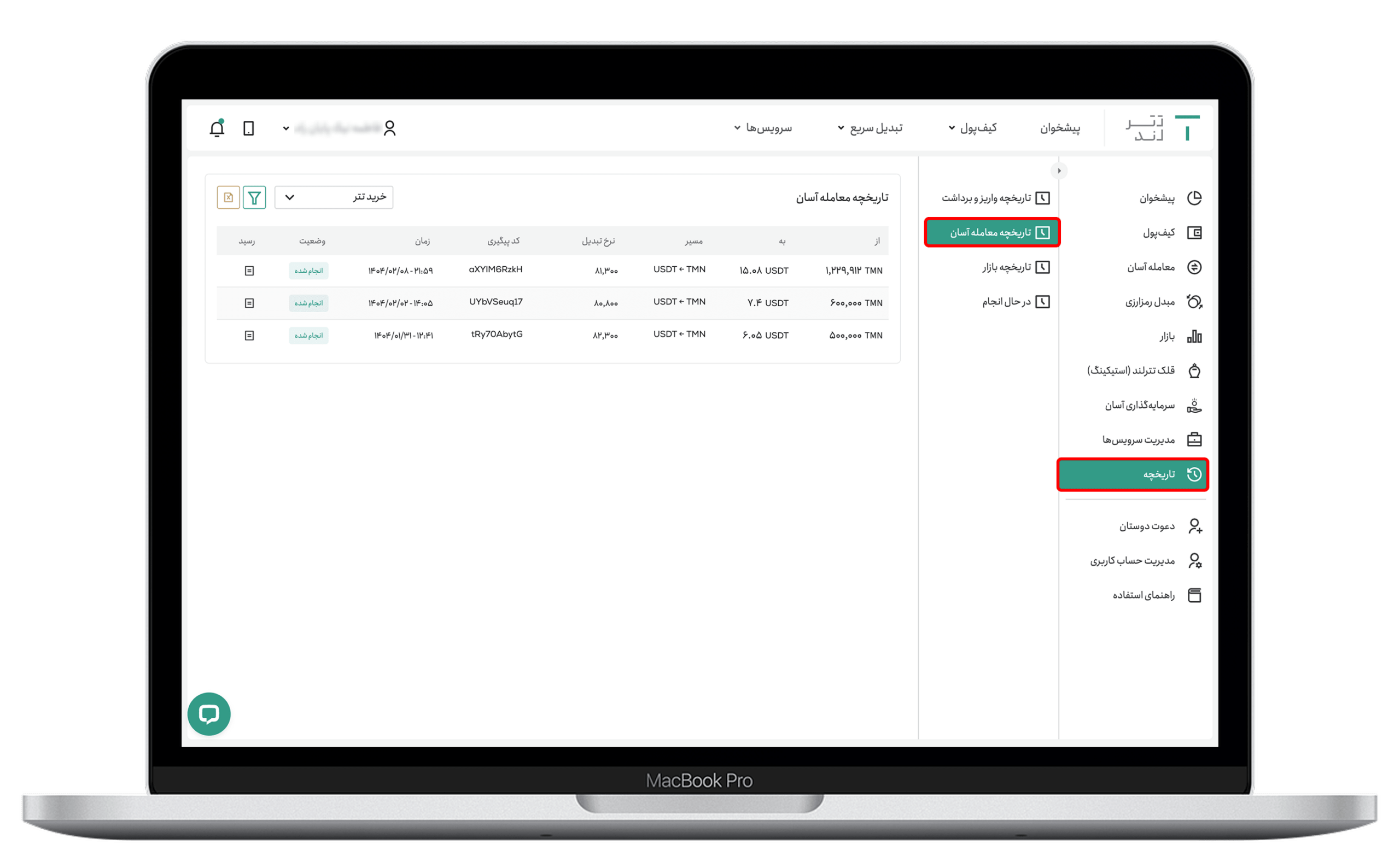 فرآیند مشاهده تاریخچه معاملات را میتوانید از اینجا شروع کنید.