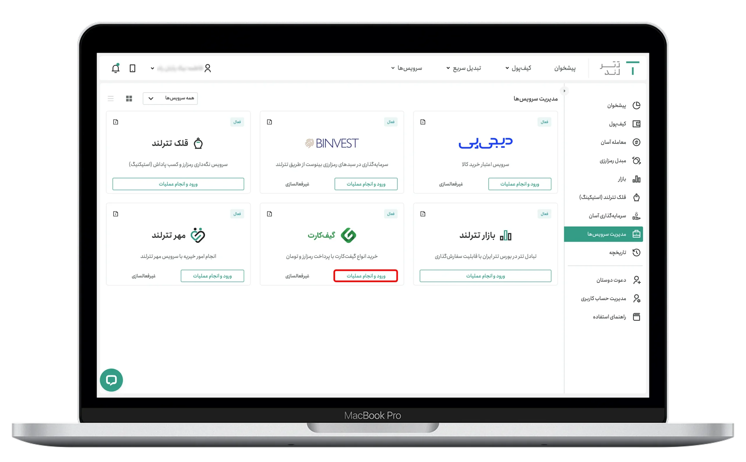 وارد حساب کاربری خود شوید و از منوی سمت راست، به بخش مدیریت سرویسها بروید.