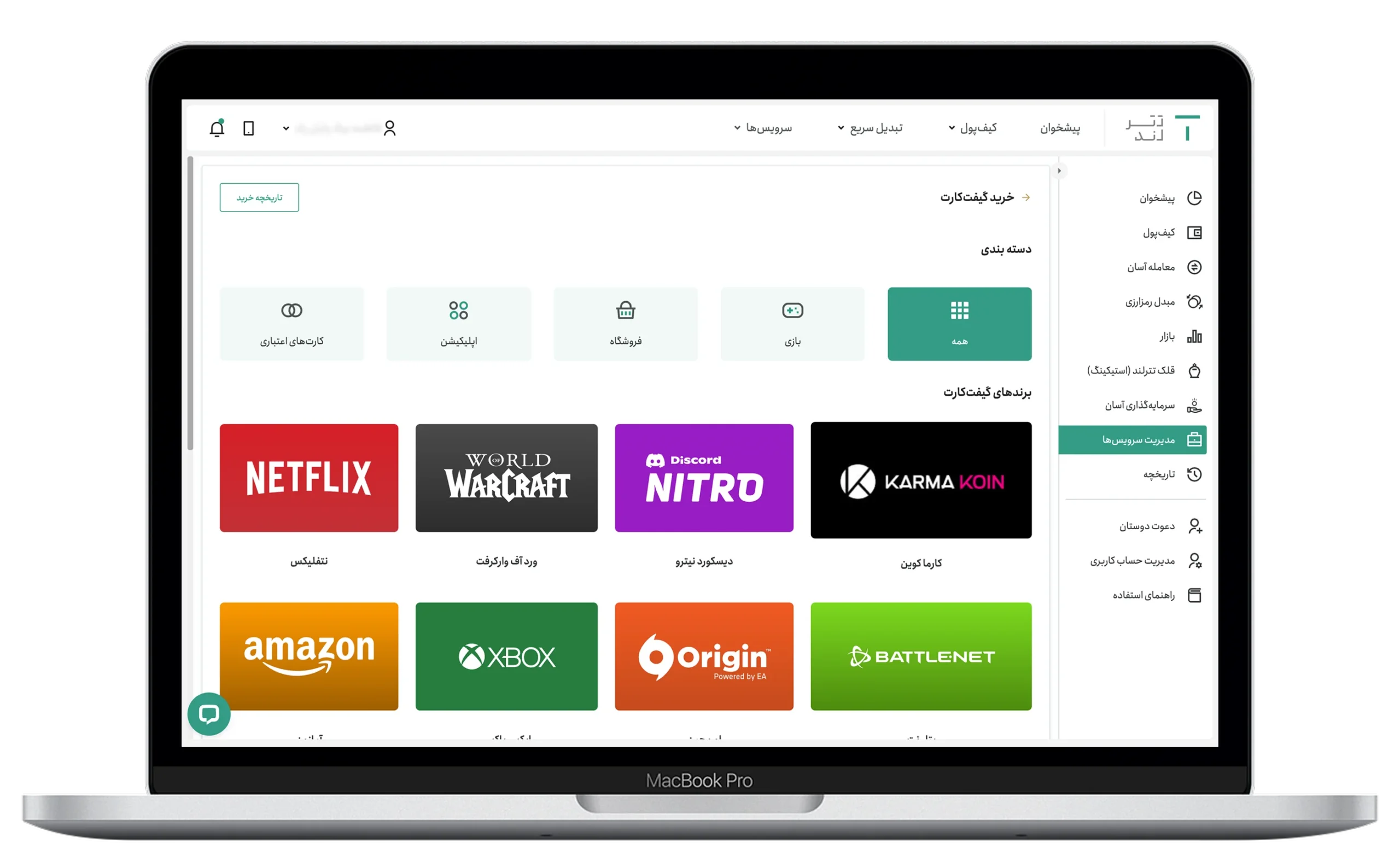 سرویس گیفتکارت این امکان را فراهم میکند تا کاربران با پرداخت تومان یا تتر، گیفتکارتهای متنوعی از فروشگاهها و سرویسهای بینالمللی را خریداری کنند.