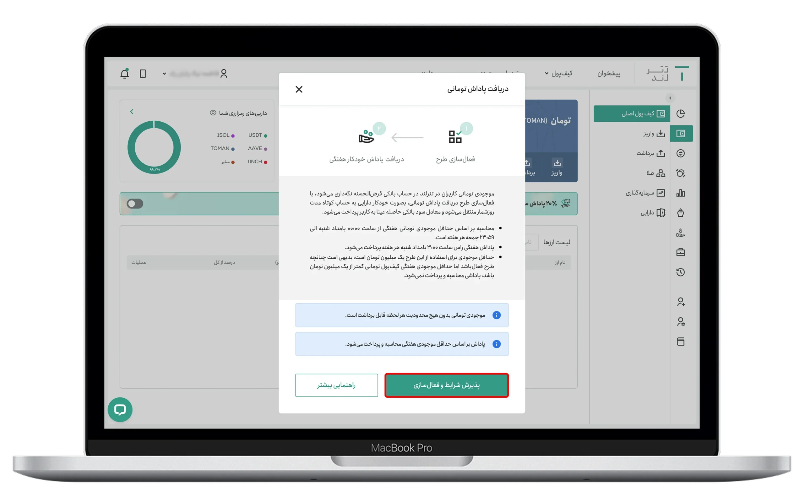 در این مرحله، میتوانید شرایط محاسبه سود و نحوه برداشت موجودی را مطالعه کنید.