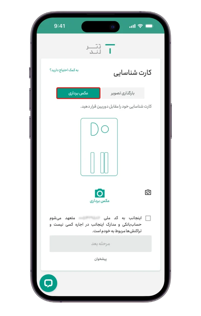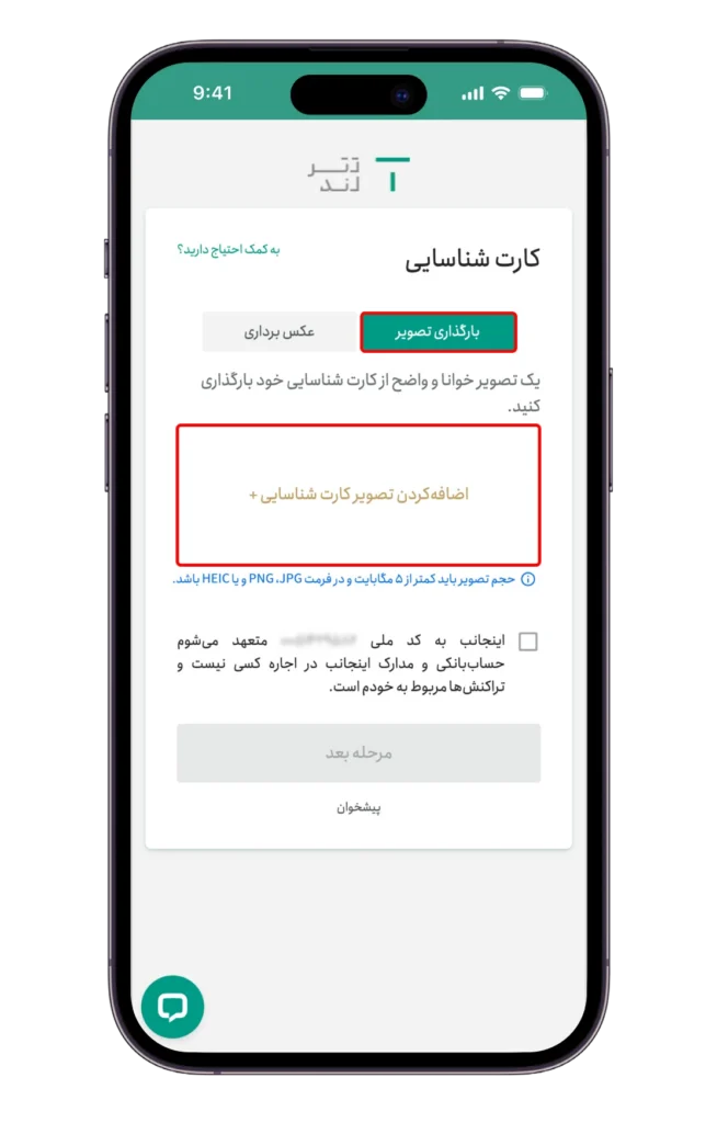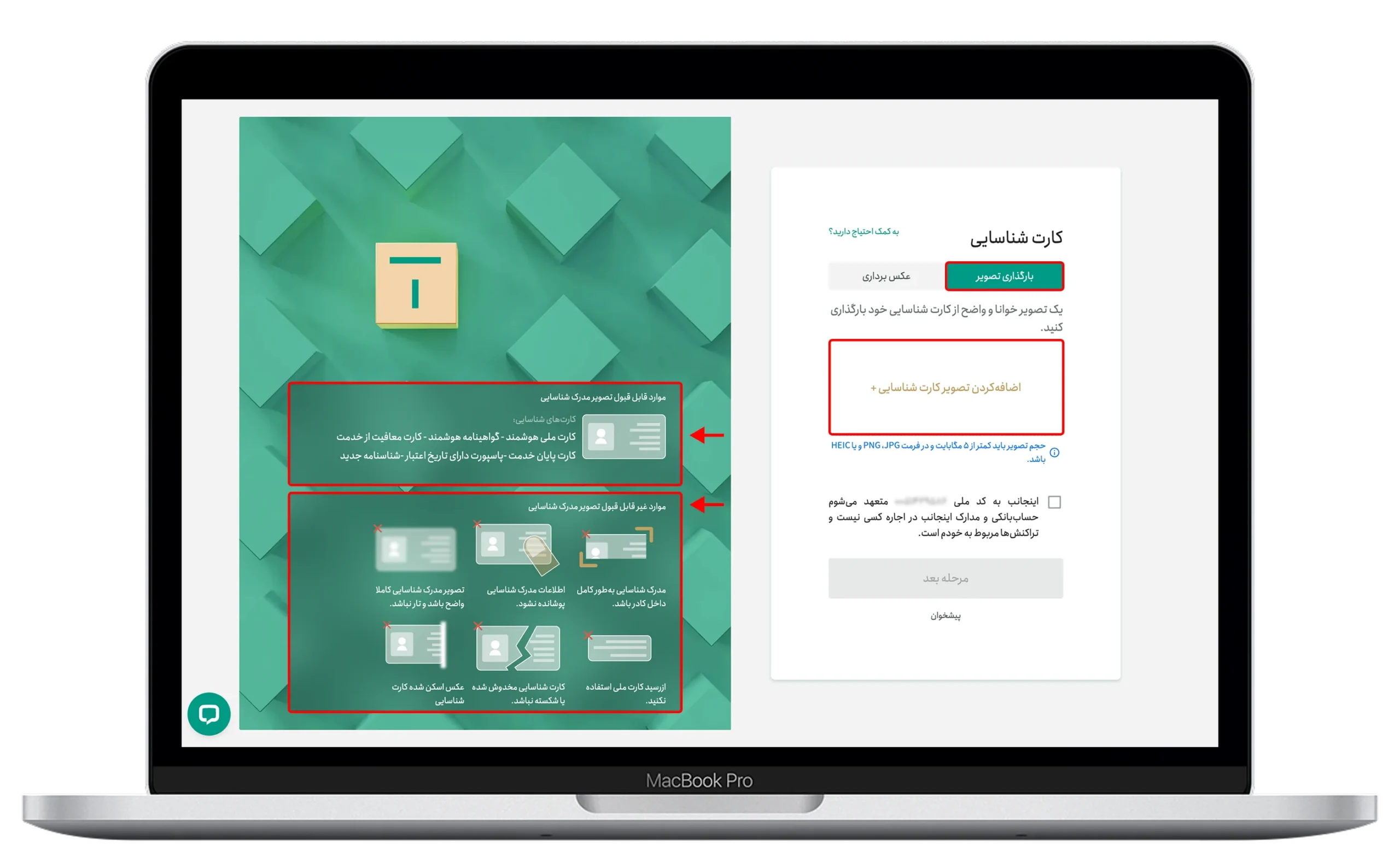در این روش، باید تصویری خوانا و واضح از کارت شناسایی خود را بارگذاری کنید.